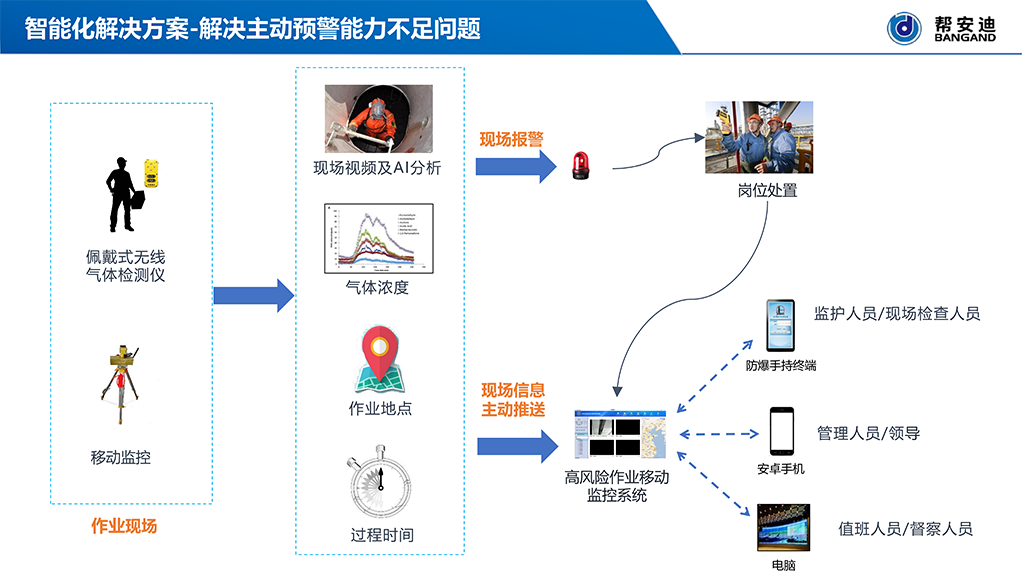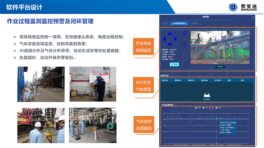 在化工园区运营过程中,特殊作业环节因环境复杂、风险隐蔽、管理难度大,一直是安全生产的重点与难点。传统管理方式多依赖人工巡检、纸质作业票与经验判断,难以实现对作业过程中潜在风险的实时识别与动态管控。尤其在监管资源有限的情况下,不合规作业难以及时发现,给企业及第三方作业人员带来严重安全隐患。针对上述行业痛点,帮安迪依托在化工行业多年深耕积累的丰富经验,自主研发了“高风险特殊作业智能监测监控系统”。