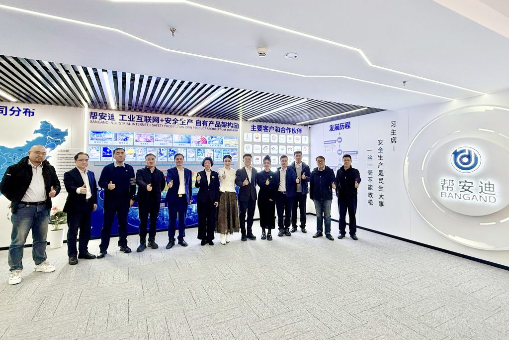 在林明奇董事长的陪同下,张丽董事长一行参观了帮安迪企业展厅,全面了解了公司在工业互联网、安全生产、智能应急等领域的创新成果与实际落地案例。座谈会上,帮安迪团队系统介绍了公司的发展历程、资质荣誉、技术研发实力以及公司在智慧园区、智慧矿山、智慧罐区、应急智慧等多个复杂工业场景中的整体解决方案,并重点介绍了工业视觉检测、AI大模型、智能防爆终端等自主核心技术,体现了帮安迪在工业安全数智化领域的深厚积累与实战能力。
